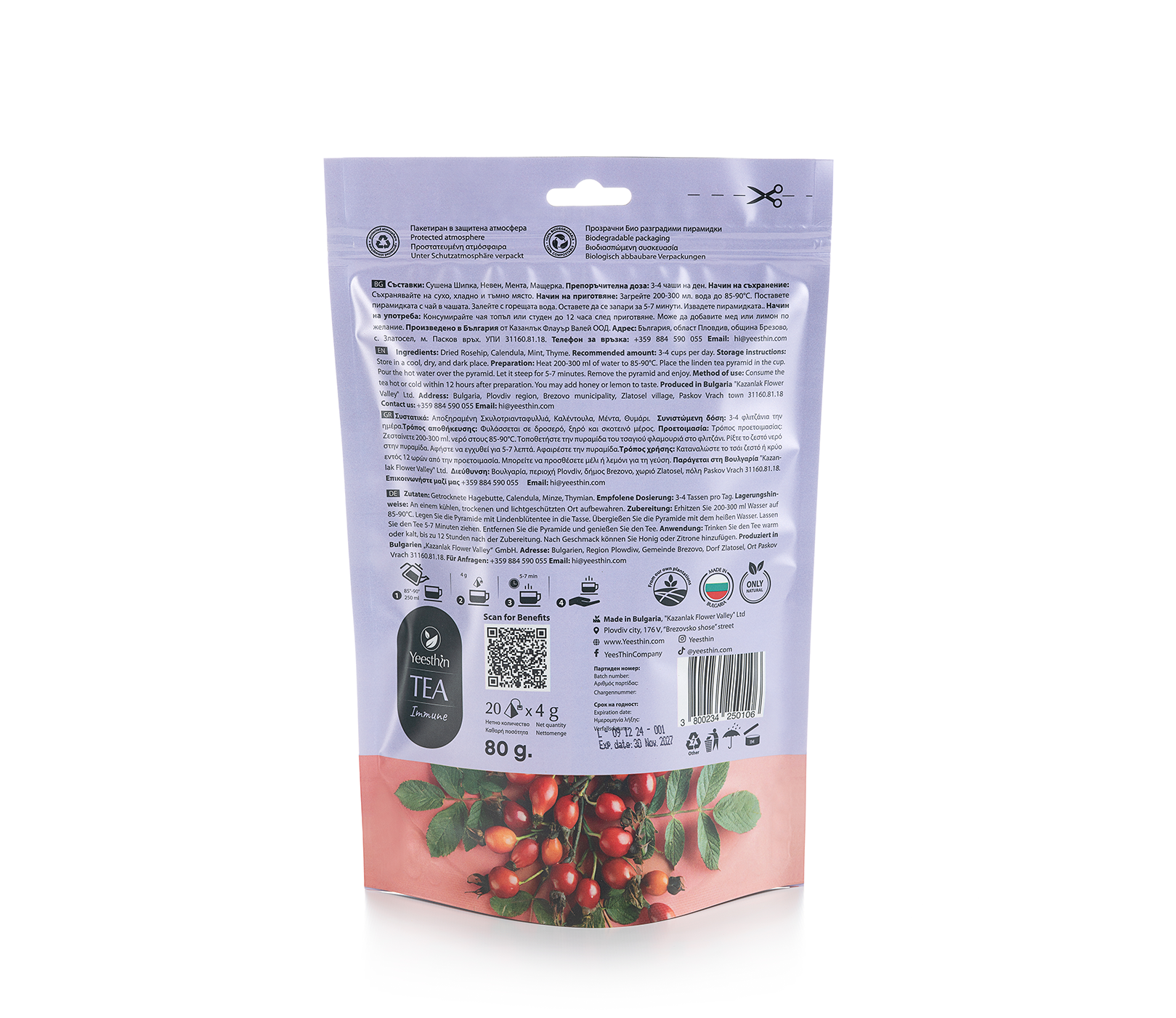 Το Yeesthin® Immune είναι ένα υψηλής ποιότητας βοτανικό μείγμα, παρασκευασμένο από προσεκτικά επιλεγμένα φυτικά συστατικά που καλλιεργούνται σε οικολογικά καθαρές περιοχές της Βουλγαρίας. Τα βότανα αποξηραίνονται σε χαμηλές θερμοκρασίες, ώστε να διατηρούν το φυσικό τους άρωμα, τη γεύση και τα φυτικά τους χαρακτηριστικά.